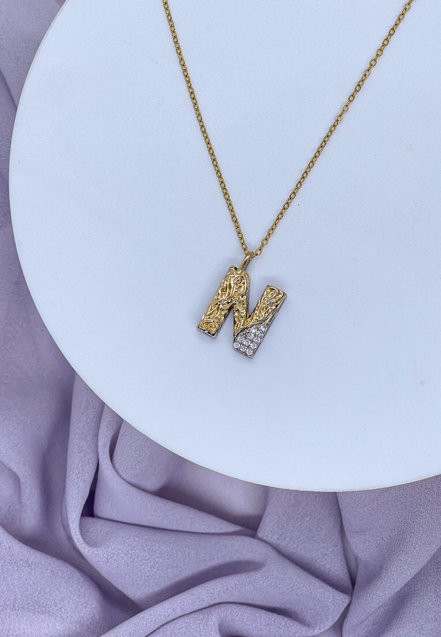 Be the first to review “Bahr Crumpled N Letter Necklace”
