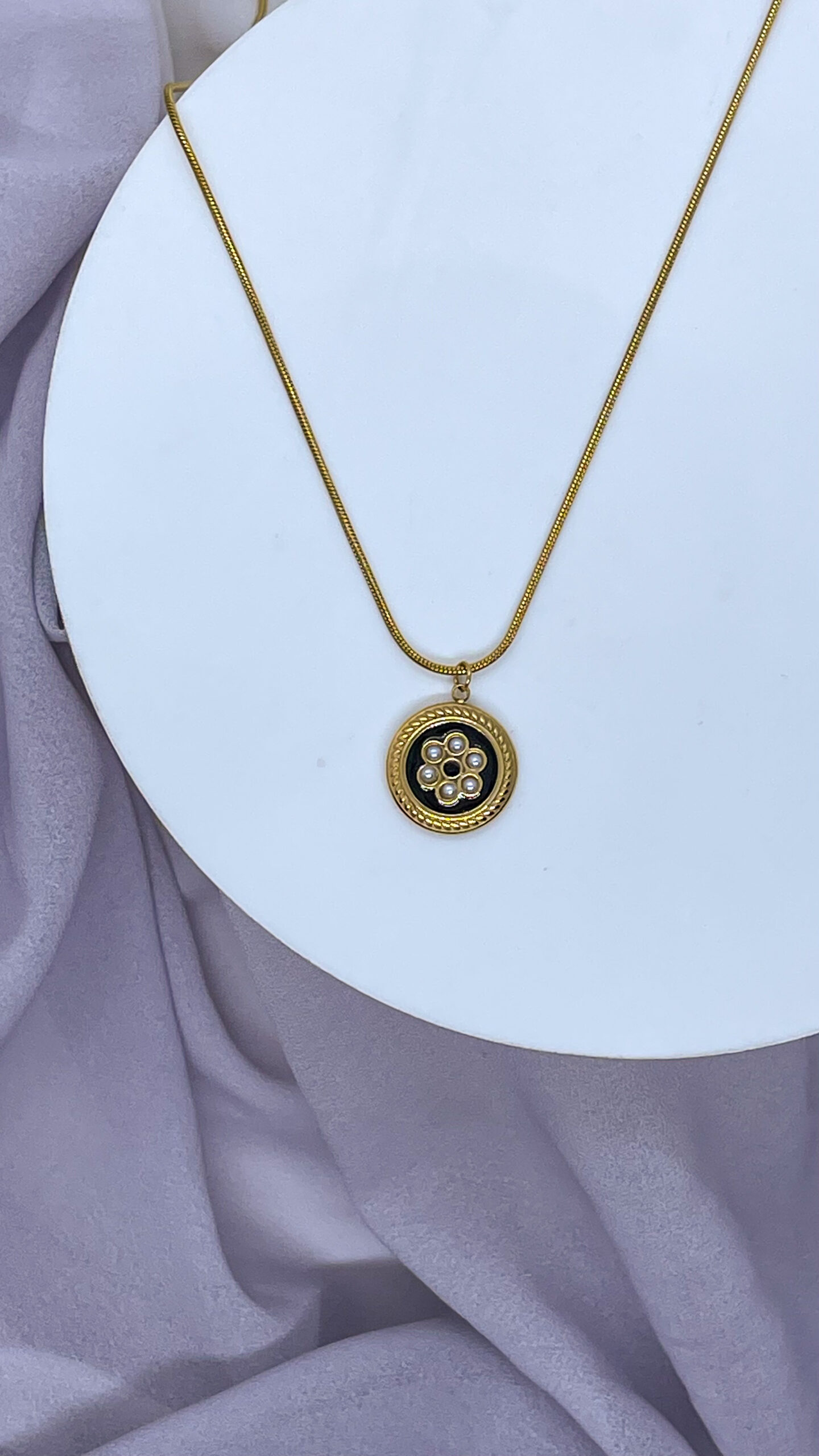 Bahr Flower Necklace – Gold Stainless with Black Background | Elegant Accessories in Alex