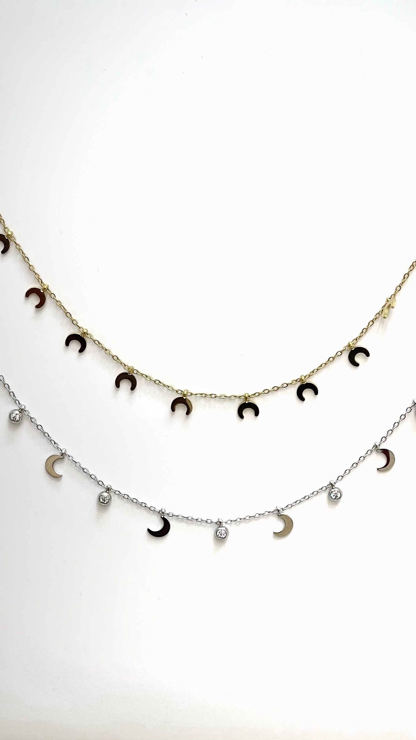 A delicate gold necklace featuring multiple crescent moons, perfect for layering or wearing solo. Stylish, trendy, and full of celestial vibes.