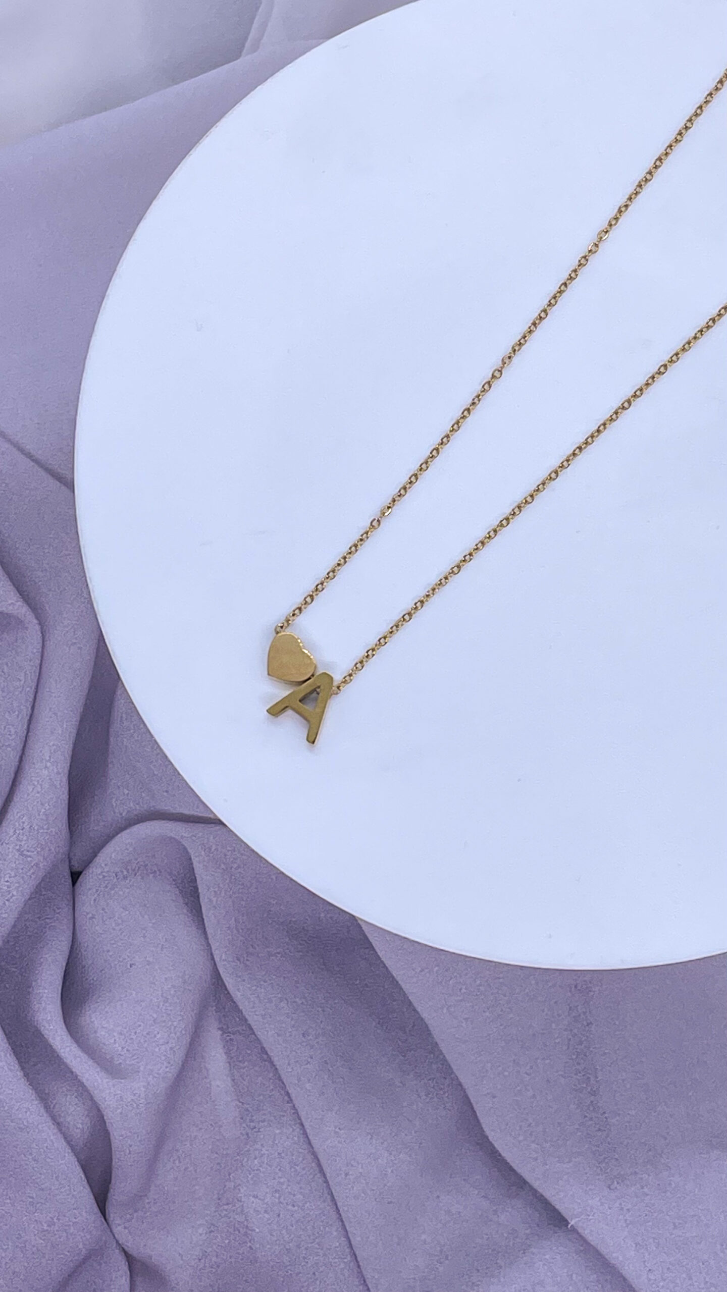 Bahr Stainless Steel Letter Necklace – A Letter with 3D Heart Pendant – Gold