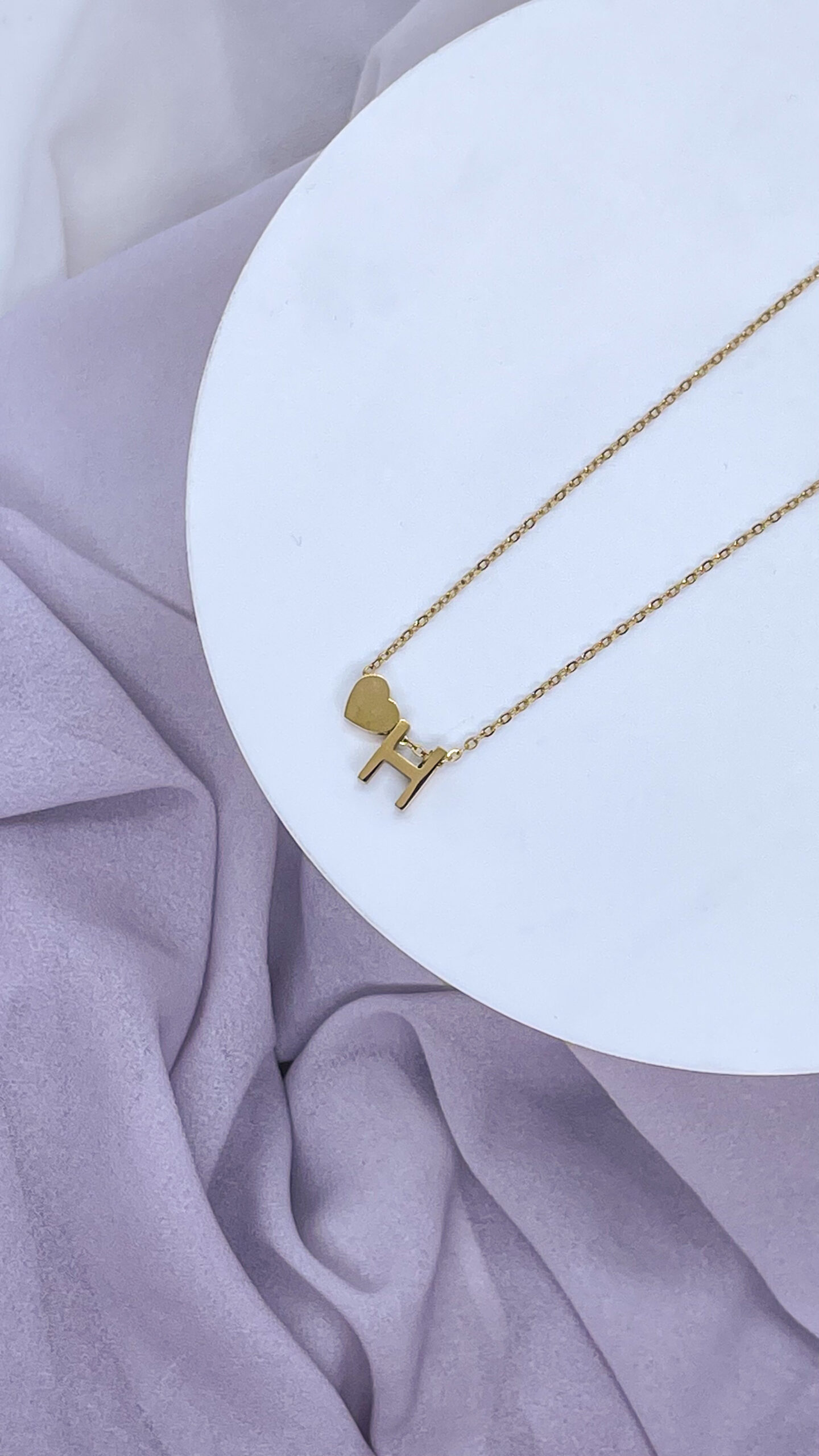 Bahr Stainless Steel Letter Necklace – H Letter with 3D Heart Pendant – Gold