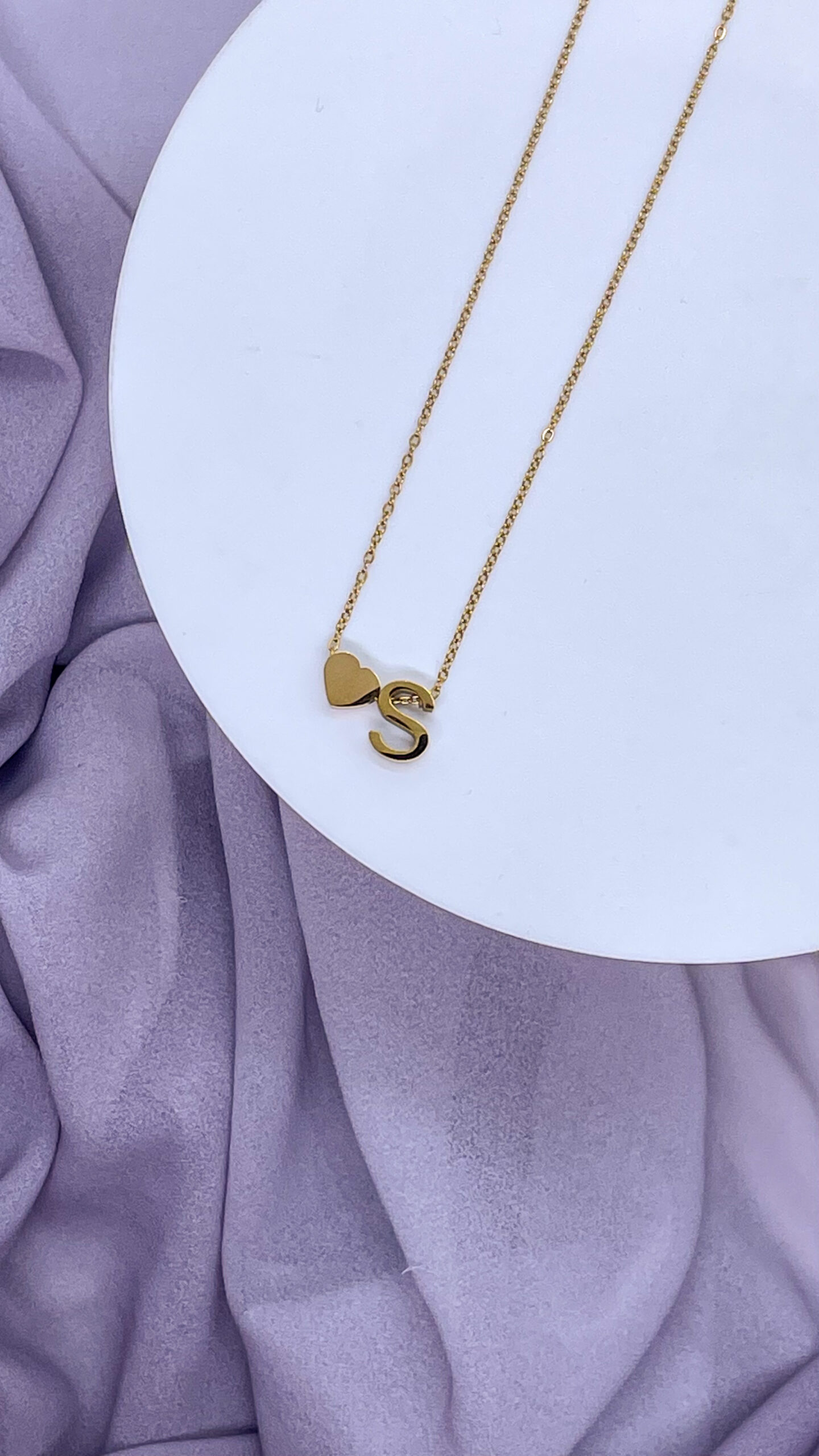 Bahr Stainless Steel Letter Necklace – S Letter with 3D Heart Pendant – Gold