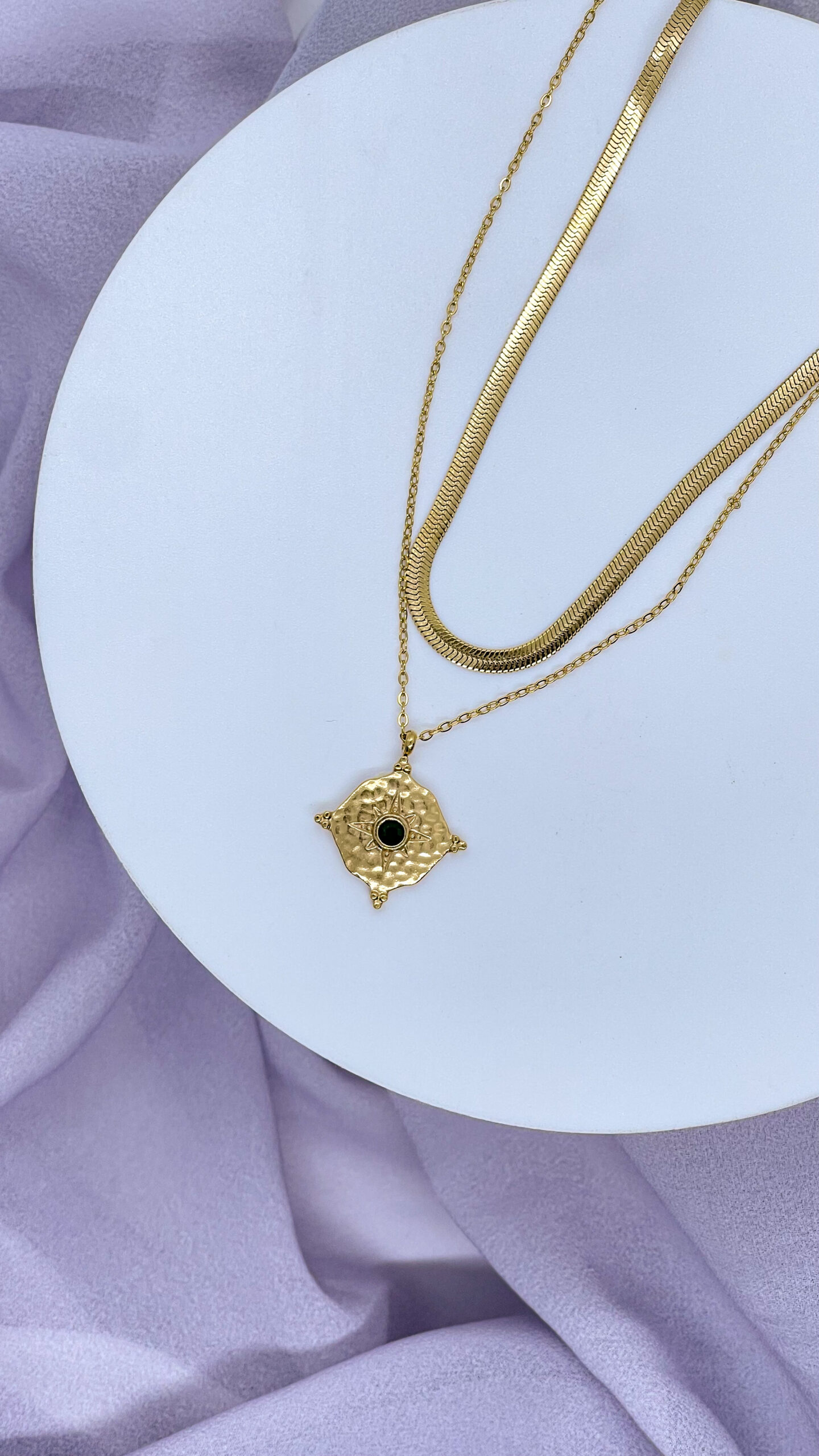 two layer necklace Egypt – gold sneak chain – Bahr handmade accessories – layered necklaces in Alex – trendy stainless steel jewelry – modern minimal necklace