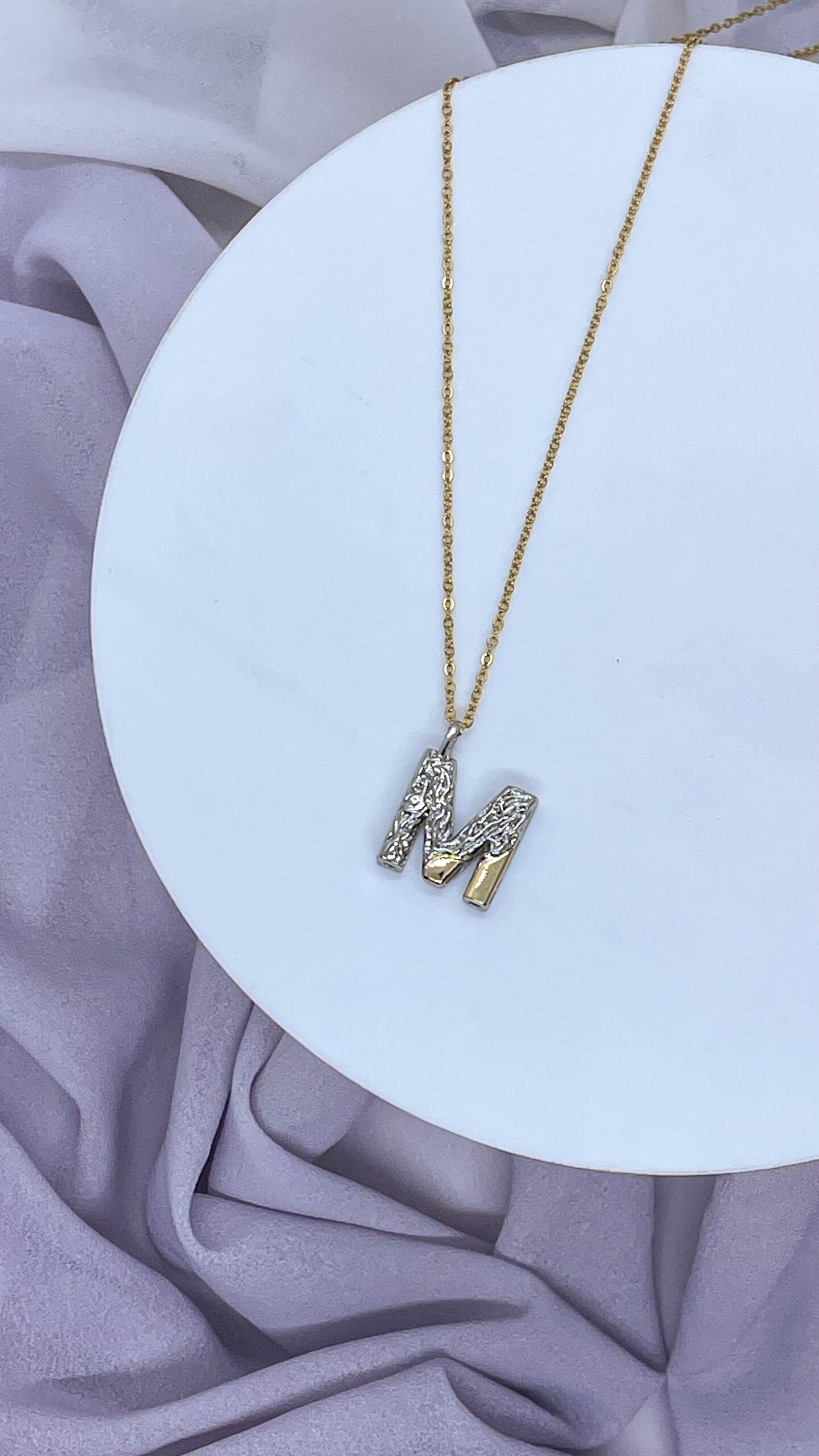 Platinum Gold & Silver Two-Tone Letter M Necklace – Elegant Mixed Metal Jewelry for Women